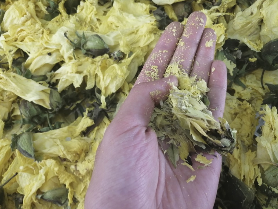 2020年09月02日,許昌智工空氣能烘干機烘干的黃蜀葵成果展示